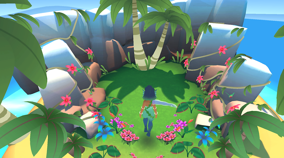 A mythical druid guide leads exercises as you populate the islands with flora and fauna. I created the island landscape and plants for the activity.