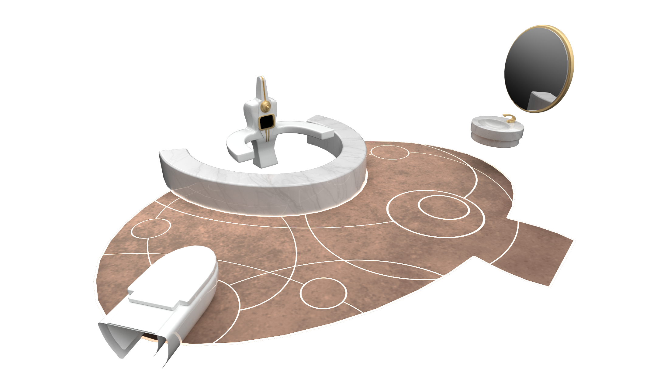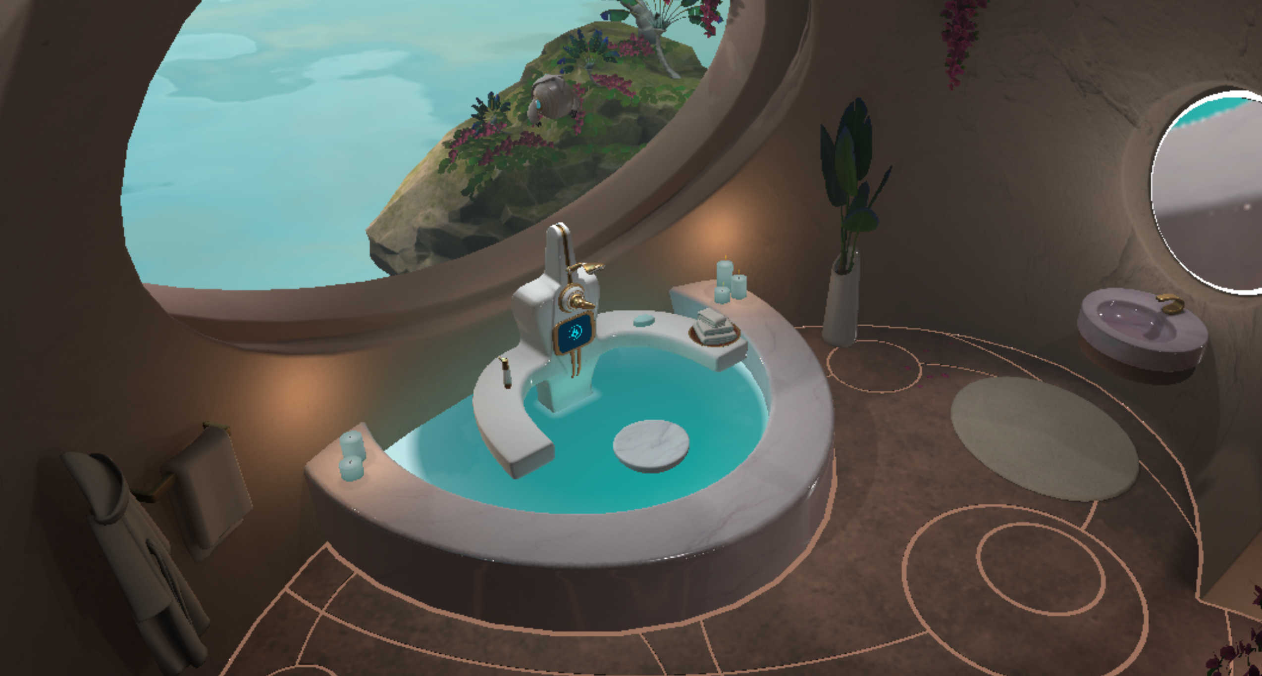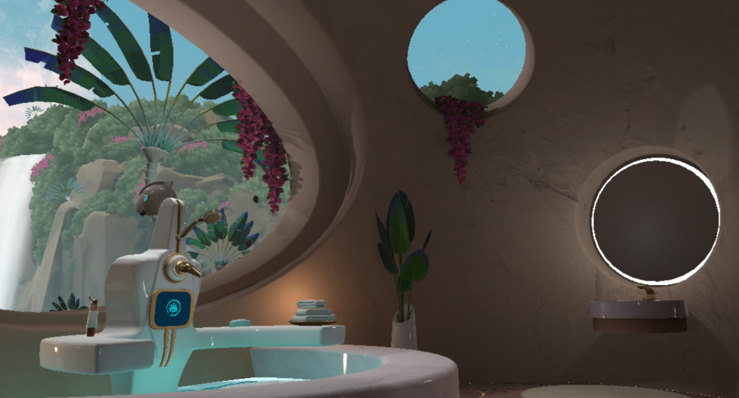 Activities of Daily Living, or ADL for short, are crucial in a patient’s rehab to return to their lives after injury. Our first ADL activity was bathing. We wanted a suite of ADL activities that included toileting, brushing teeth, and getting dressed. We tackled Bathing first and wanted a resort-like spa to host the activities in. The resort is futuristic and located on another planet to add interest to the mundane task of bathroom activities.