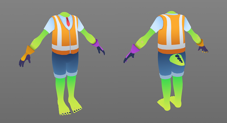 The original avatar was modeled in T-pose, and in 2024 I had to change every avatar to A-pose. I redid textures and cleaned up models into A-pose for the avatars that were custom on our projects.